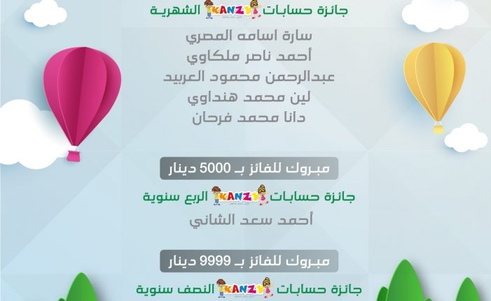 وقد شهدت السحوبات الأخيرة فوز الطفل سيف البلبيسي بجائزة السحب نصف السنوي، والبالغة قيمتها 9,999 دينار أردني، في حين كانت الجائزة ربع السنوية الثانية للعام والبالغة قيمتها 5 آلاف دينار أردني من نصيب الطفل أحمد الشاني.