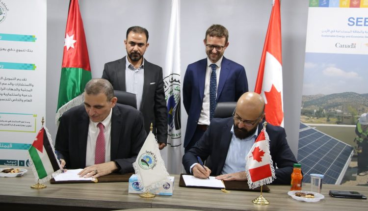 وكالة الناس –  وقع بنك تنمية المدن والقرى ومشروع التنمية الاقتصادية والطاقة المستدامة‎ ‎‏في الأردن، ‎بحضور مدير التعاون في السفارة الكندية‎ ‎اليوم الاثنين، مذكرة تفاهم في مجال حلول كفاءة الطاقة والطاقة المتجددة.