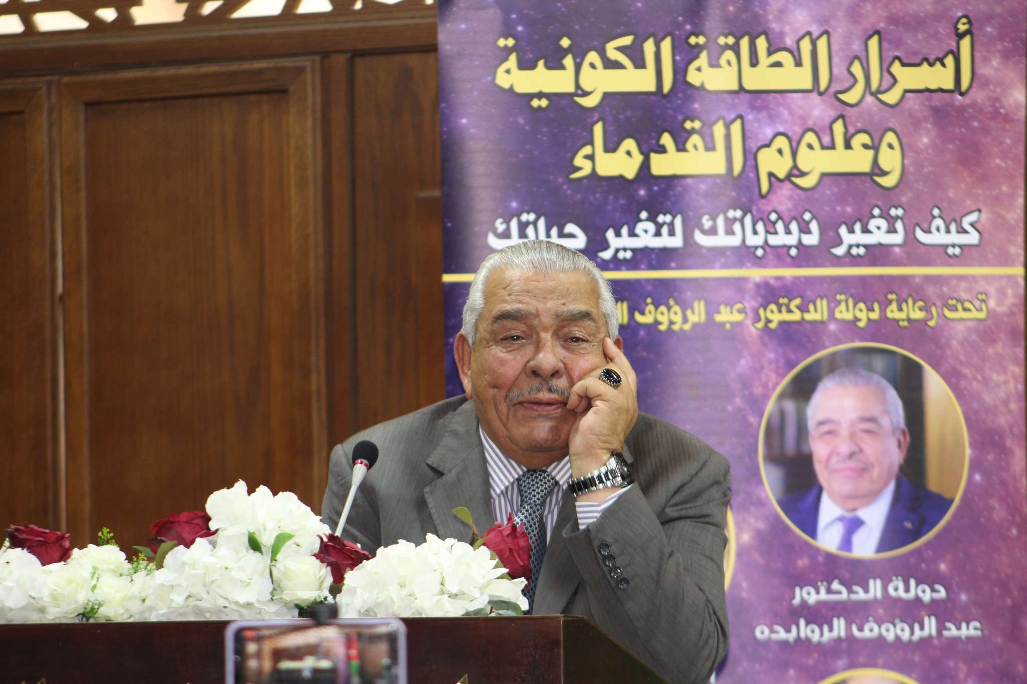 ثم تحدث الشاعر “محمد خضير” بورقة دمجت بين الأدب والطاقة والفكر والعلم أسماها (أبجدية النور وماهات الوعي)؛ فقال: نجد أنفسنا أمام محاولة جادة وشجاعة لإعادة الصياغة بين الإنسان والكون، أن الكون هو قصيدة كبرى تتوزع أبياتها بين الذرات والمجرات، إن هذا العمل ليس مجرد تجميعا لنظريات الطاقة بل هو معراج معرفي، يسعى لإسترداد السيادة الإنسانية على الواقع، من خلال فهم أعمق لآليات الماتريكس الكوني وسنن الله في الخلق، حيث أن النص لوجستي بين الأدب والطاقة، فتتجلى عبقرية  الطرح بهذا الكتاب باستثمار اللغة الأدبية، لأن الأدب هو أعلى لغة للتعبير عن الذبذبة الإنسانية، الفكرة هنا ليست مجرد وحدة عقلية بل بذرة طاقية.