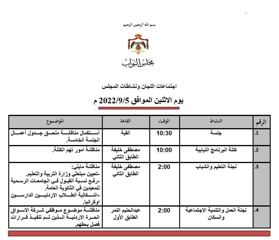 وتاليا جدول اعمال المجلس والكتل النيابية: