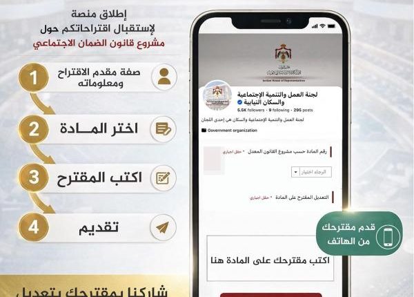 وكالة الناس – أعلنت لجنة العمل والتنمية والسكان النيابية اليوم الإثنين، عن تفعيل منصة الاقتراحات والآراء المتاحة أمام المواطنين بشان مشروع قانون معدل لقانون الضمان الاجتماعي.