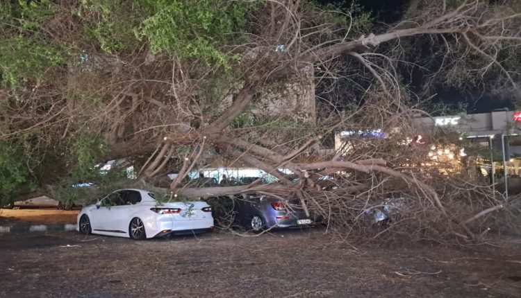 العقبة: سقوط شجرة يسبب أضرارًا جسيمة لمركبات.. شاهد