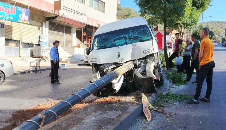 وكال الناس – أصيب عدد من ركاب حافلة عمومية صغيرة إثر اصطدامها بعمود كهرباء في وسط مدينة عجلون.