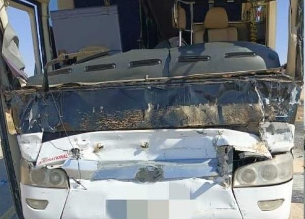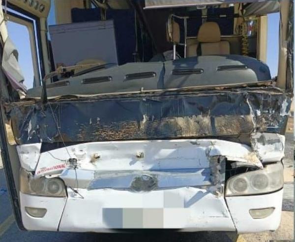 21 إصابة بتصادم حافلة وشاحنة في الطريق الصحراوي (صور)