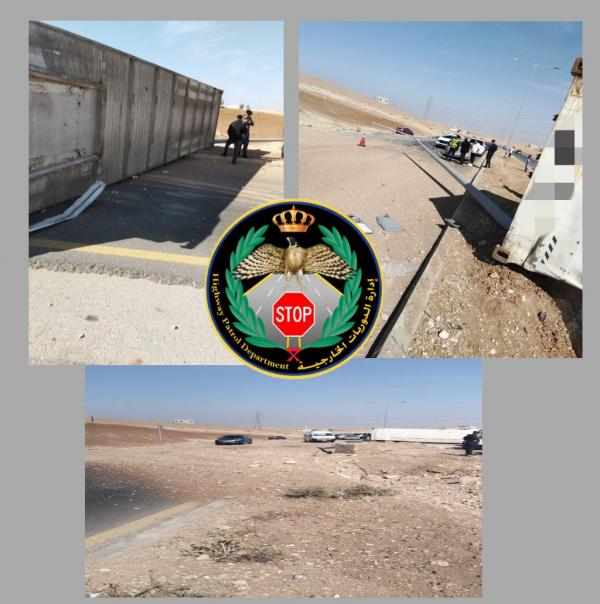 وكالة الناس — قالت إدارة الدوريات الخارجية في مديرية الأمن العام، إن كوادرها تتعامل مع حادث تدهور مركبة شحن رأس قاطرة محملة بمادة السمك على طريق الزرقاء- اربد ما بعد جسر النعيمة بحوالي 5 كم باتجاه الزرقاء.