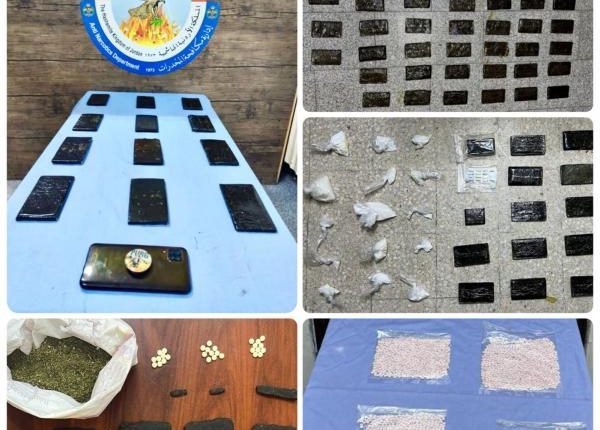 فيما جرى في لواء الرويشد متابعة ومداهمة شخص مصنف بالخطر وإلقاء القبض عليه وضُبط بحوزته 8 آلاف حبّة مخدرة، وفي البادية الوسطى أُلقي القبض على تاجر للمخدرات وبحوزته 18 ألف حبة مخدرة ، فيما وضُبط في محافظة معان 9 كفوف حشيش بحوزة أحد التجار.