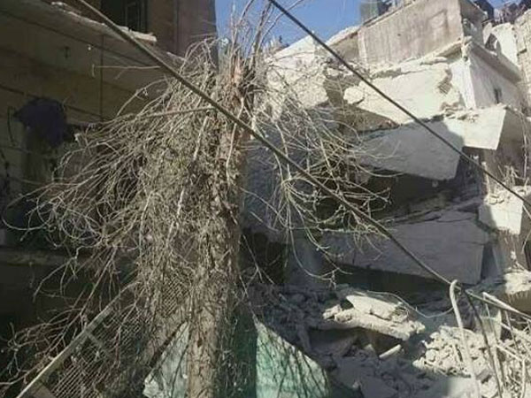 وأضاف: «بيوت وحارات ما فيها حدا لا مؤيد ولا معارض حتى ما سلمت منكن ومن شركن شو بده الواحد لسه يحكي حسبنا الله عليكم بس هالبيت متله متل بيوت السوريين وما حيكون احجاره اغلى من قطرة دم طفل او جرح أم او دمعة شيخ و حرقة قلب أب تتهنوا بحجاره و حجار كل بيت سوري لأنه رح نرجع نعمره على قبوركن يا عديمين الرحمة».