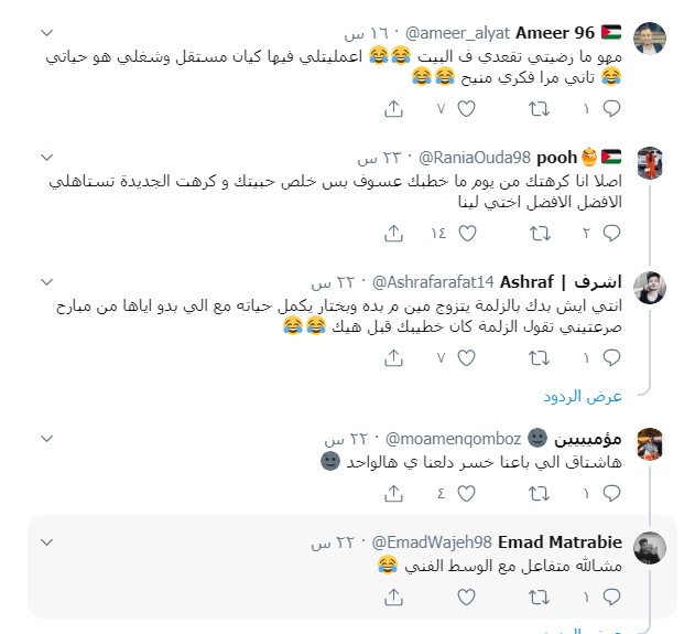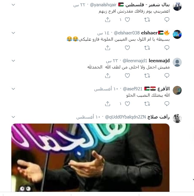 شاهد التعليقات المثيرة على تغريدة “لينا القيشاوي” على زفاف محمد عساف:”بسيطة يا إم اللول بس العيون الملونة فازوا عليكي”