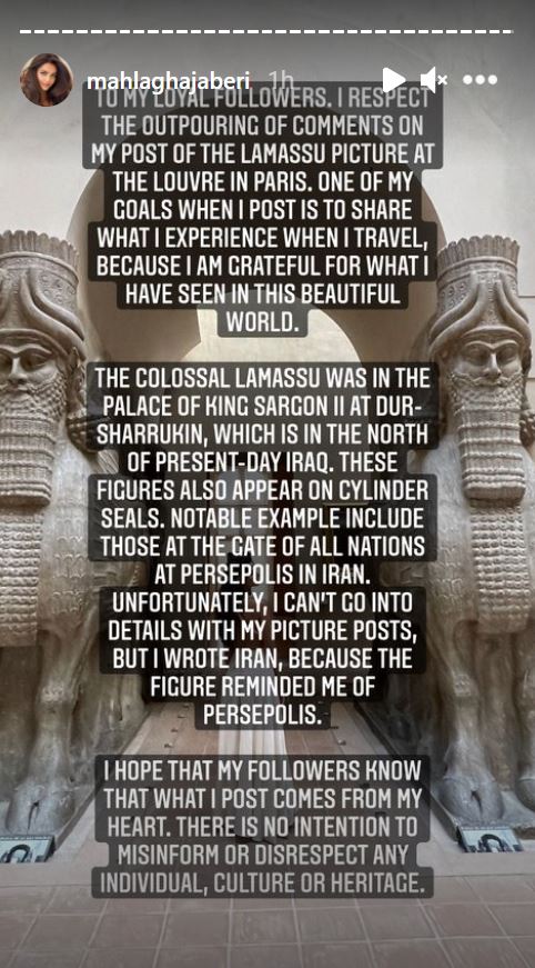 وكالة الناس – أثارت عارضة أزياء إيرانية غضب عدد من العراقيين بعد مشاركتها صورة التقطتها في متحف اللوفر الشهير في باريس، مع تمثال “الثور المجنح”، وأرفقتها بتعليق يعبر عن حبها لإيران، كما لو كان التمثال جزءا من ثقافة بلادها. ويبدو أن التعليقات التي تلقتها العارضة الإيرانية، ماهلاغا جابري، دفعتها لحذف الصورة التي كتبت أسفلها بالإنكليزية “إيراني. كم أحبكِ”. وخاطبت إحدى المغردات على تويتر جابري، قائلة: “عزيزتي مهلاغا جابري، هذه ليست إيران الخاصة بكِ. هذا عراقنا”. وأضافت “أفترض أنك كنت سيئة جدا بدراسة التاريخ! تحتاجين بالطبع دروسا في التاريخ! تاريخنا ينتمي لنا فقط”. وقالت مغردة أخرى إن “الثور المجنح هو 100 بالمئة رمز لبلاد ما بين النهرين، ومعترف به دوليا كإرث عراقي قديم، لذلك لا تحاولي سرقة شيء لا يعود لكِ”. وأضافت موضحة لجابري “إنها ق وليست ن”، في إشارة إلى الحرف الأخير الذي يميز ما بين كلمتي “العراق” و”إيران”، باللغة الإنكليزية. ورد أحدهم على جابري مؤكدا أن “هذا تمثال عراقي آشوري”. بعد سيل الانتقادات اختفت الصورة من حساب جابري، ونشرت صورة أخرى لها مع الثور المجنح مرفقة بتوضيح هذه المرة. وقالت العارضة الإيرانية إن “أحد أهدافي عندما أنشر هو مشاركة ما أختبره عندما أسافر، لأنني ممتنة لما رأيت في هذا العالم الجميل”. وأوضحت أن “الثور المجنح الضخم كان في قصر الملك سرجون الثاني، الواقع في شمالي (ما يعرف) اليوم بالعراق”. وأردفت “للأسف، لا يمكنني الخوض بالتفاصيل في منشوراتي الصورية، لكنني كتبت إيران، لأنه (..) ذكرني ببرسيبوليس”. ويُطلق على الثور المجنح اسم “لاماسو” بالأكادية، و”لاما” بالسومرية، وهو عبارة عن تمثال ضخم، قيل إنه يمثل آلهة قديمة، يتم تصويره عادة بجسد ثور وجناحي نسر ورأس إنسان، ليرمز إلى القوة والحكمة والشجاعة. ويعود تاريخ التمثال إلى مدينة “دور شروكين” التي شيدها الملك الآشوري، سرجون الثاني، شمالي العراق، خلال الفترة الواقعة ما بين عامي 705 و721 قبل الميلاد، وكان من أبرز رموز مملكة آشور التي كانت من أبرز الحضارات التي قامت على أراضي العراق الحالي. الحرة