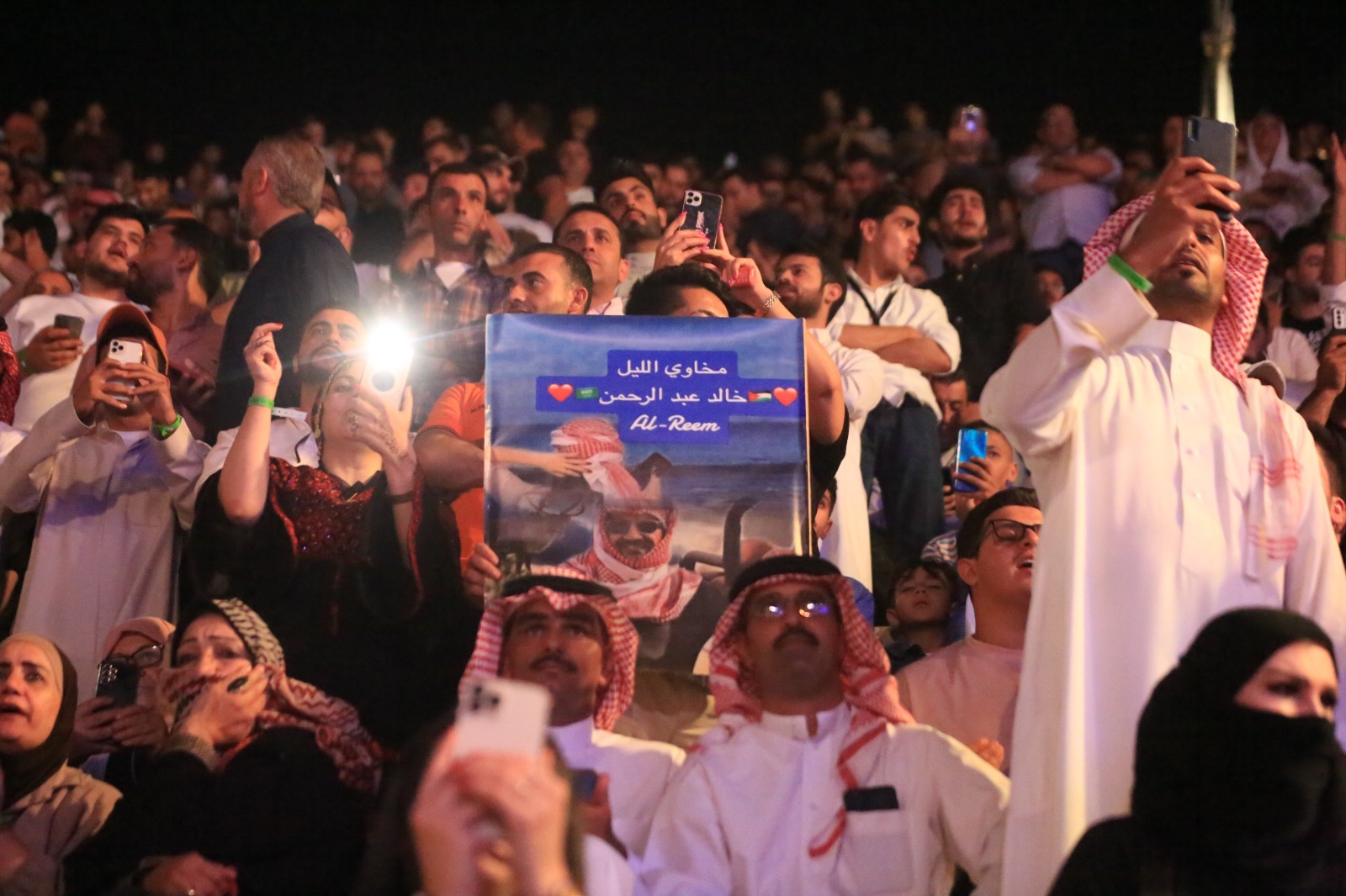وعلى مدى ساعة ونصف، تفاعل الجمهور الغفير مع الأغنيات القديمه التي قدمه الفنان خالد عبدالرحمن الذي عبر سعادته بالمشاركة في مهرجان جرش في دورته الحاليه معتبرا مهرجان جرش مهرجانا عالميا.