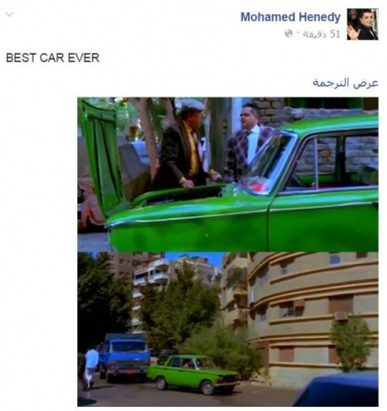 وكان الفنان محمد هنيدي أكثر وضوحاً، فنشر عبر صفحته الشخصية على “فيسبوك”، صورة لمشهد له من فيلم “يا أنا يا خالتي”، أثناء تواجده بموقع التصوير بجوار سيارة “فيات” 128، ساخراً من الصور التي نشرها رمضان