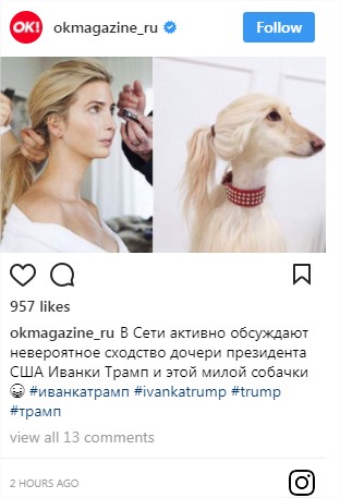 في البداية نشرت صورة الكلبة بشكل طبيعي، ولكن المستخدمون وجدوا أن هناك شبها كبيرا بينهما، وخصوصا تصفيفة الشعر.