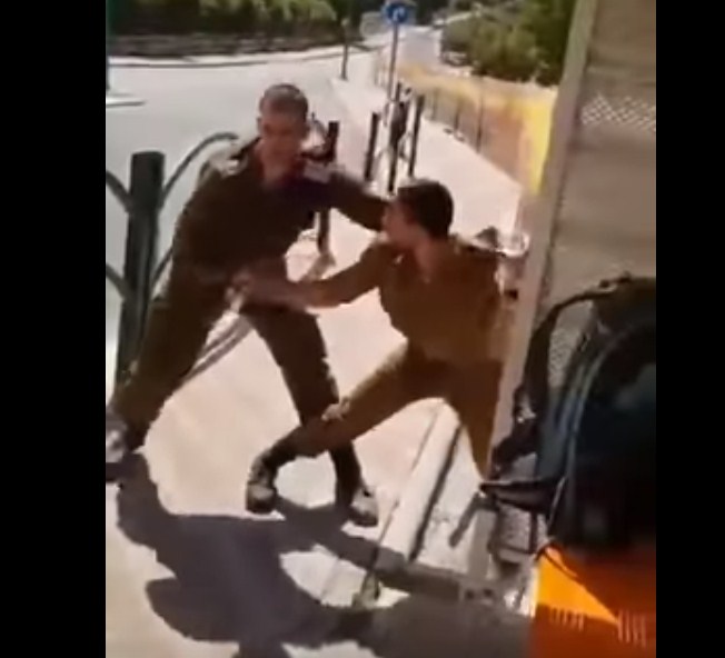 كما أظهر الفيديو أحد ضباط الجيش الإسرائيلي وهو يجبر جندياً على الركوب في السيارة للذهاب إلى الخدمة العسكرية على حدود غزة، إلا أن الجندي كان خائفاً وانبطح أرضاً ورفض الانصياع لأوامر الضابط.