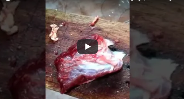 قطعة من اللحم تتحرك في سوق عام ( فيديو )