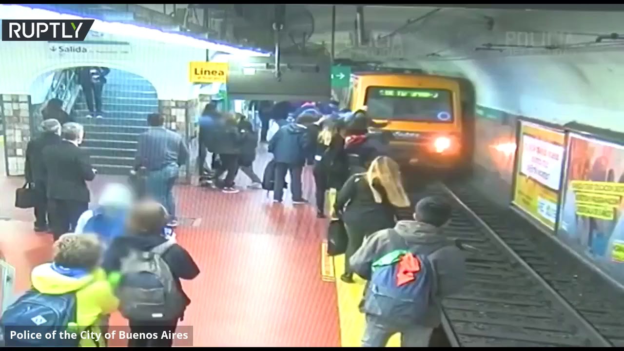 وتمكن المسافرون في مدينة بوينس آيرس الأرجنتينية من إنقاذ المرأة بعد أن طلبوا من سائق القطار التوقف.