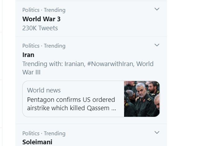 بعد مقتل سليماني .. أكثر من نصف مليون تغريدة عن حرب عالمية ثالثة