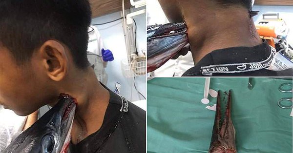 منذ عدّة أيام كان الشاب الإندونيسي، محمد إيدول (16 عاما)، يمارس الصيد مع والده عندما باغته سمكة إبرة قفزت من المياه وطعنته في رقبته، قبالة سواحل جزيرة سولاويزي الإندونيسية، وأظهرت صورة فم سمك الفصيلة الخرمية، التي تشتهر بأنها بارعة في القفزة من المياه بسرعة تصل إلى 60 كيلومترا في الساعة، وهي تخترق رقبته من جهة، لتخرج من الجهة الأخرى للرقبة، وظلت السمكة عالقت في جسمه، حتى تمت إزالتها في المستشفى، مما أصاب محمد بجروح خطيرة، تطلبت إجراء عملية جراحية عاجلة، استغرقت نحو ساعتين.
