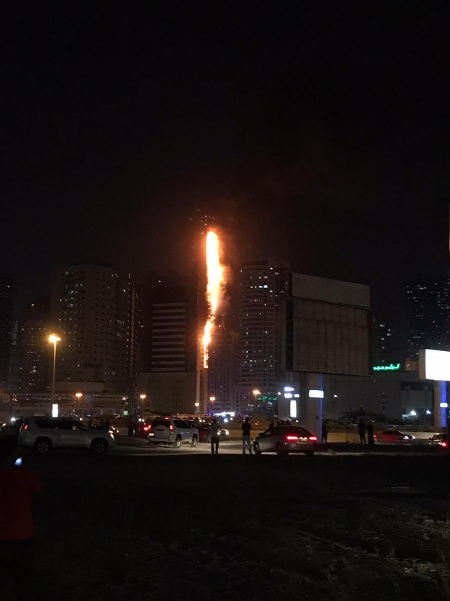 عقب سيجارة كان السبب بحريق البرج السكني في الشارقة (صور)