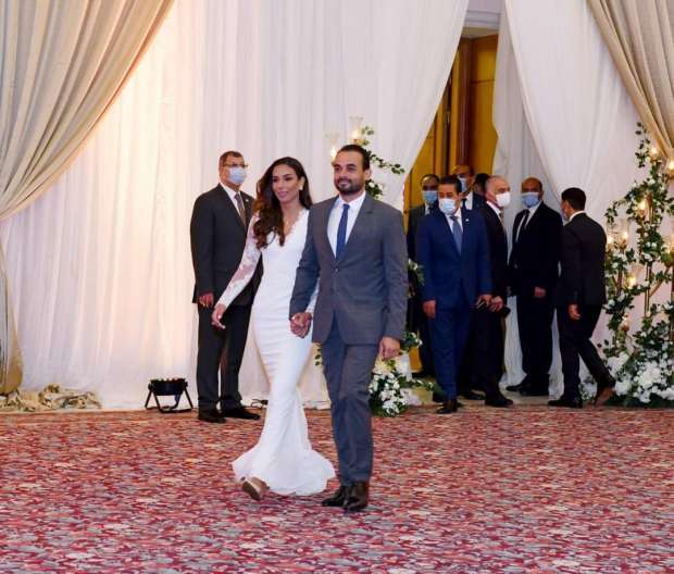 وأضافت أنه: “وسط أجواء احتفالية، مع الالتزام الكامل بالتباعد الاجتماعي وارتداء الكمامات، وفي حضور عدد قليل جداً من أسرة العروس، شهد الحفل الرئيس السيسي؛ وقرينته السيدة انتصار؛ ومصطفى مدبولي؛ رئيس الحكومة المصرية”.