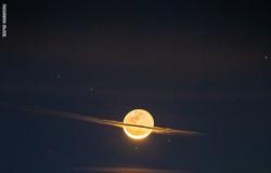 وقال المصور: “بينما كنت أنهي الجلسة، لاحظت وجود غيمة غريبة الشكل على بعد مسافة.. وفوجئت باصطفاف مسار القمر والغيمة. ورأيت الفرصة المثالية، والتقطت الصورة”، والتُقطت هذه الصورة، في الساعة 5:45 صباحاً، وأطلق عليها سوجيل اسم “The Moon Dressed like Saturn”.
