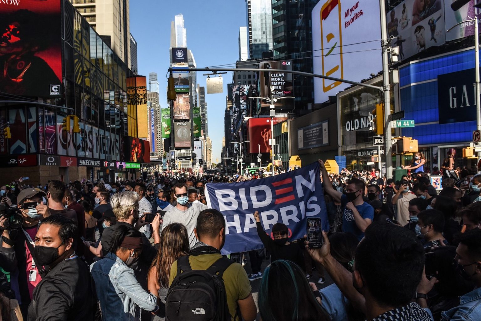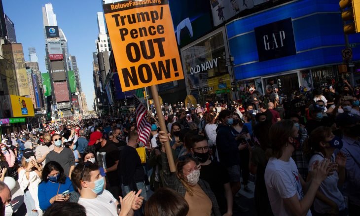 People are gathering on the corners in Midtown Manhattan to celebrate the defeat of @realDonaldTrump pic.twitter.com/AUMYHCSrmW