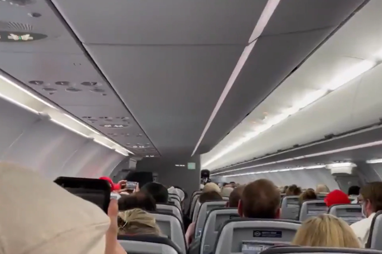وقد نشر أحد ركاب الطائرة، التي غادرت مطار ريغان الدولي متوجهة إلى فينيكس سكاري هاربور في مدينة فينيكس بولاية أريزونا، مقطع فيديو على وسائل التواصل الاجتماعي خلال عطلة نهاية الأسبوع يظهر فيها العديد من المسافرين، وهم يرتدون قبعات ترامب ويهتفون الولايات المتحدة.. الولايات المتحدة.