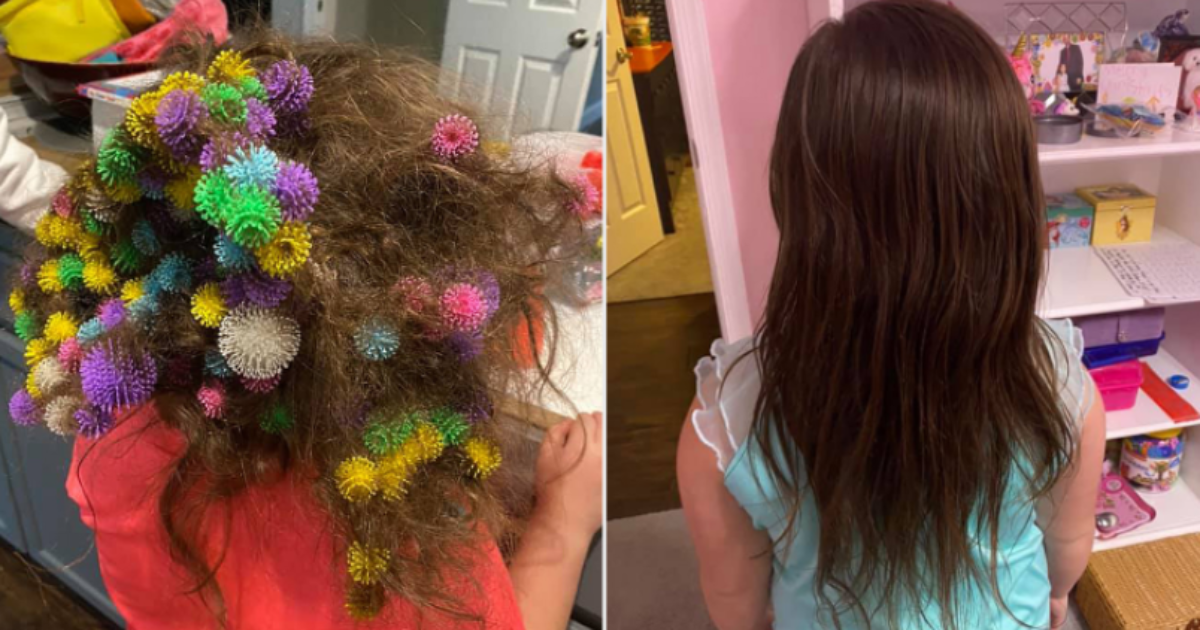 أم تمضي 20 ساعة بتخليص شعر ابنتها من 150 قطعة ألعاب (صورة)