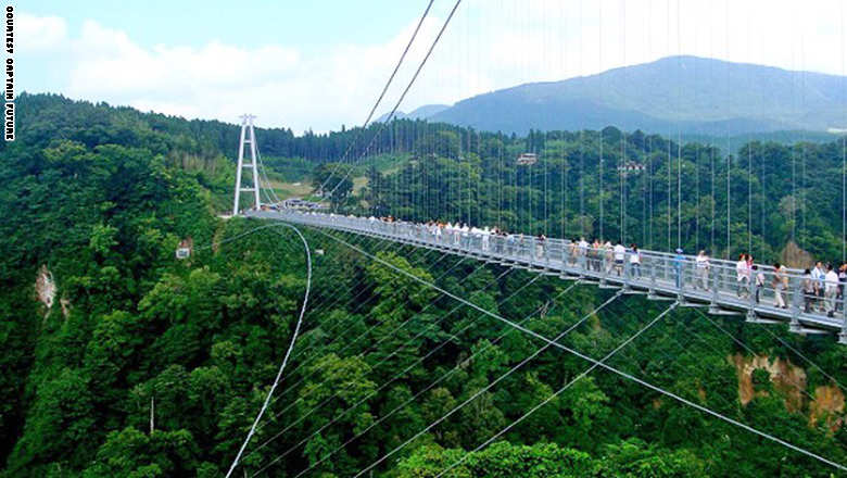 ويطل الجسر على شلالات ‘شيندونوتاكي’ على ارتفاع 390 مترا، وهو أطول جسر معلق للمشاة في العالم.