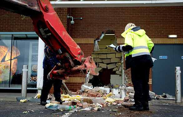 وبحسب صحيفة دايلي ميل البريطانية، اقتحم لصوص في مقاطعة وسترشير البريطانية بواسطة جرافة مسروقة أحد محلات مارك أند سبنسر من أجل سرقة ماكينة صراف آلي وتمكنوا في أقل من 10 دقائق من إنجاز سرقتهم والهروب ‘بهدوء’ وسلامة.