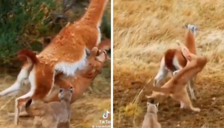أحدهما قفز على ظهرها … شاهد.. مطاردة مثيرة بين أسدين وحيوان اللاما
