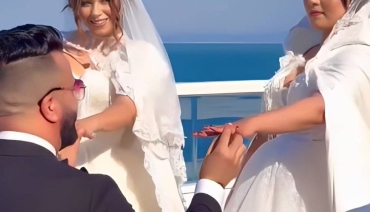 ووثقت الصور العريس وهو يتوسط عروسيه بفستان زفافهما وبدت عليهما الفرحة والسعادة رغم أنهما يتشاركان نفس الرجل.
