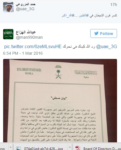 وكالة الناس – أثارت تغريدات كتبها المغرد الإماراتي حمد المزروعي، بشأن الهجوم المسلح الذي استهدف الشيخ السعودي عائض القرني في جنوب الفلبين، سخطا واسعا في مواقع التدوين القصير (تويتر).