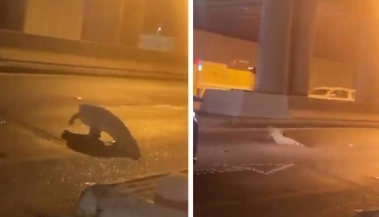 تمساح يظهر فجأة وسط شارع سريع بدولة عربية و حيرة من أين جاء!