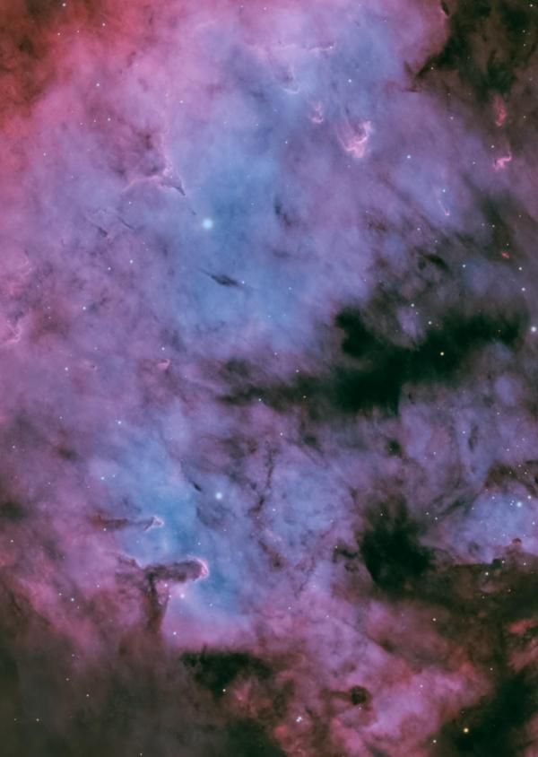 يساهم تجمع النجوم القريبة من السديم، وتحديداً هذا النجم اللامع، في تكون التشكيلات التي تظهر في الصورة، والتي يشبه بعضها “أعمدة الخلق” الشهيرة وبعضها يشبه تشكيلات سديم “خرطوم الفيل”، فضلاً عن التكتلات والبقع والتشكيلات المختلفة الظاهرة في الصورة.