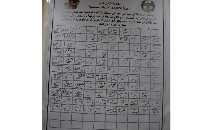 وكالة الناس – أطلقت الهيئة الإدارية لديوان عشائر قبيبة بني عواد لحضور مبادرة للتوقيع على وثيقة منع إطلاق العيارات النارية في الأفراح والمناسبات، بحضور عطوفة متصرف لواء القويسمة الدكتور صقر الدروع وسعادة المهندس احمد العبدالات رئيس مجلس محافظة العاصمة ونائب أسامة بيك البشابشة رئيس مركز امن زهور مندوبا عنه عطوفة مدير الشرطة في مقر ديوان عشائر قبيبة بني عواد الكائن في جبل الزهور.