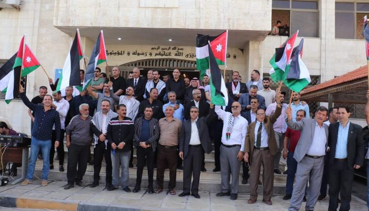 ورفع المشاركون في الوقفة التضامنية التي أقيمت في مبنى بلدية الرصيفة، العلمين الأردني والفلسطيني، وأستهل عطوفة رئيس بلدية الرصيفة شادي الزيناتي كلمته بقراءة الفاتحة على أرواح الشهداء داعياً بالصبر والسلوان لأهاليهم.