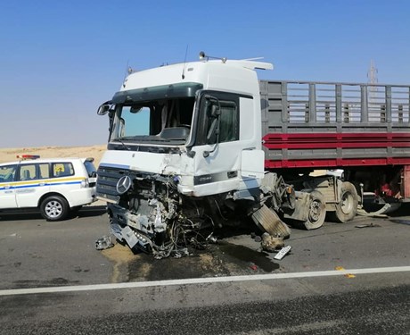 4 إصابات بتصادم بين “تريلا” وحافلة على الصحراوي