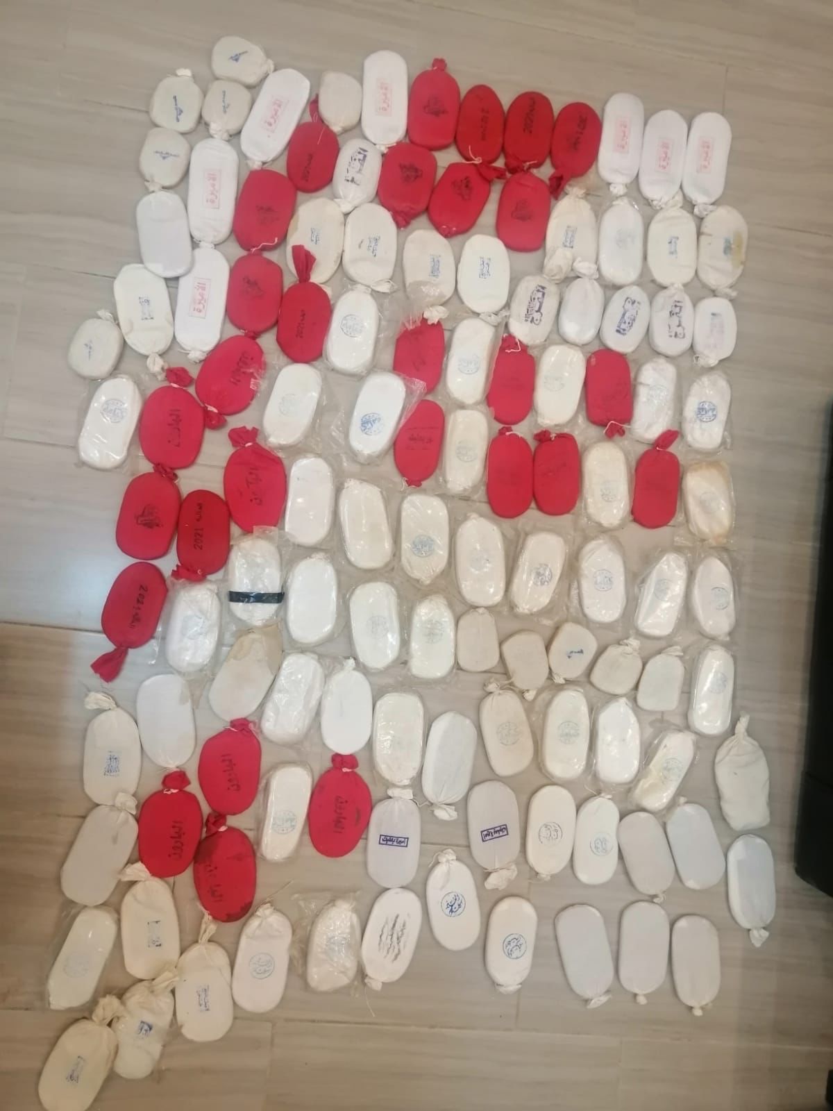 وفي القضية الأولى تمت متابعة معلومات وردت حول حيازة شخصين لكميات كبيرة من مادة الحشيش المخدرة والعمل على بيعها وترويجها داخل المملكة، إذ تولى فريق خاص تتبع الشخصين وجمع المعلومات حولهما ليُحدد موعد نقلهما للمود المخدرة، وجرت مداهمتهما على احدى الطرق الخارجية وإلقاء القبض عليهما أثناء ذلك وضُبط داخل المركبة التي كانا يستقلانها 121 كفاً من مادة الحشيش المخدرة.