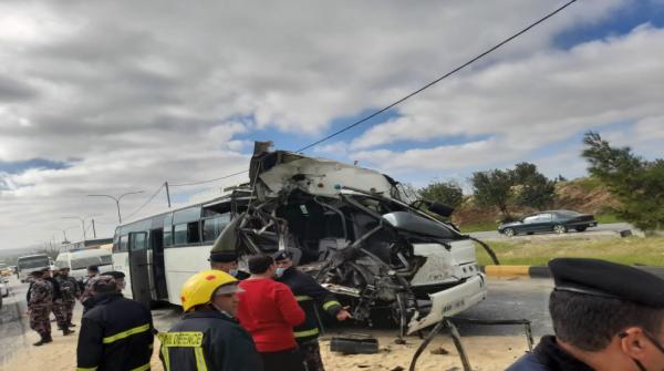 مدير عام مستشفى الملك المؤسس عبدالله الجامعي الدكتور محمد الغزو، قال إن المستشفى استقبل 21 اصابة جراء حادث التصادم بين حافلة ركاب وقلاب ما بعد جسر النعيمة باتجاه مدينة اربد.