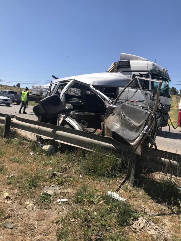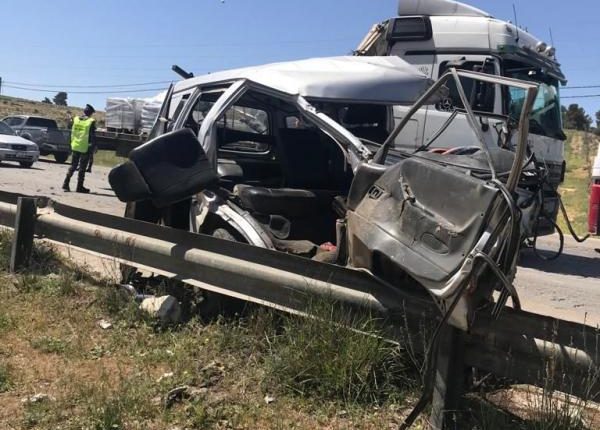 وفاتان و 4 اصابات بتصادم مركبة شحن وحافلة على طريق ارحاب