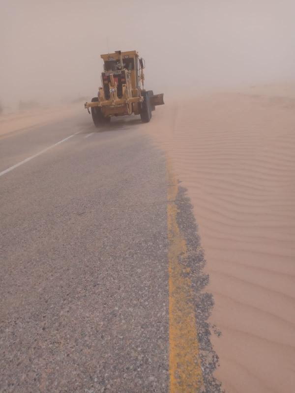 الأشغال تتعامل مع تجمع للرمال على طريق وادي عربة ( صور )