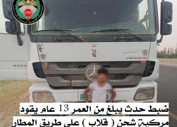 وكالة الناس – ضبطت كوادر الدوريات الخارجية العاملة على طريق المطار، اليوم السبت، حدثا يبلغ من العمر 13 عاما يقود مركبة شحن “قلاب”.
