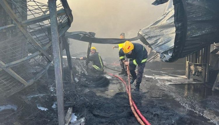 حيث عملت فرق الإطفاء على إخماد الحريق والسيطرة عليه ومنع انتشاره إلى المستودعات المجاورة في حين نتج عنه تصاعد كثيف للدخان نظراً لطبيعة المواد المشتعلة دون وقوع اي اصابات بالارواح .