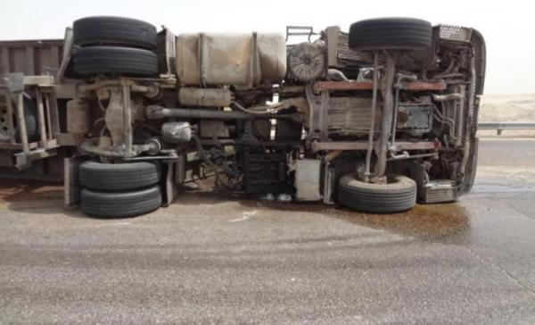 تدهور مركبة شحن محملة بالفوسفات على طريق العقبة