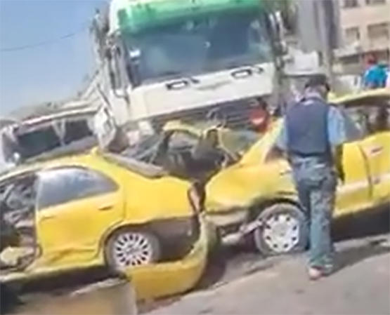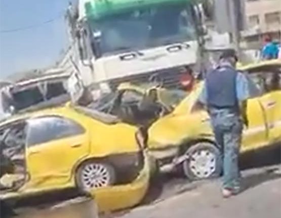 وكالة الناس –  أصيب 9 اشخاص (حصيلة أولية) اثر حادث تصادم ١٠ مركبات في منطقة عوجان في محافظة الزرقاء.