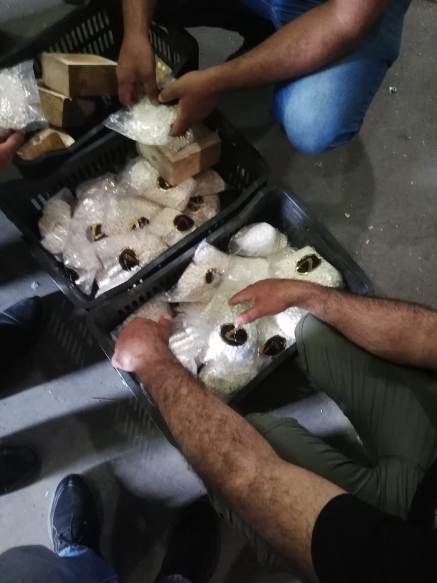 ففي القضية الأولى وبالاشتراك مع الأجهزة الامنية والجمارك الأردنية، وبعد ورود معلومات استخبارية فقد تم تتبع مسير إحدى مركبات الشحن المحملة بكمية من الخضراوات والقادمة من إحدى دول الجوار، حيث جرى ضبطها فور وصولها وبتفتيشها ضُبط بداخلها 358 الف حبة كبتاجون كانت مخبأة بشكل غير ظاهر داخل صناديق خشبية، وأُلقي القبض على ثلاثة أشخاص أحدهم من جنسية عربية تورطوا بالقضية.