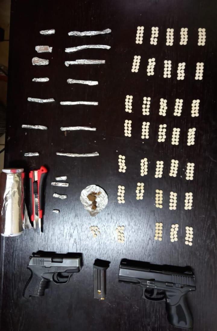 وفي القضية الثالثة تمكن العاملون في إدارة مكافحة المخدرات من إلقاء القبض على أحد الأشخاص المطلوبين وبحقه 17 طلباً ، وبعد تحديد مكان وجوده في محافظة البلقاء ، تمت مداهمته وضبطه وبحوزته 500 حبة مخدرة وكمية من مادة الحشيش وسلاحان ناريان.