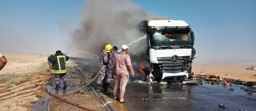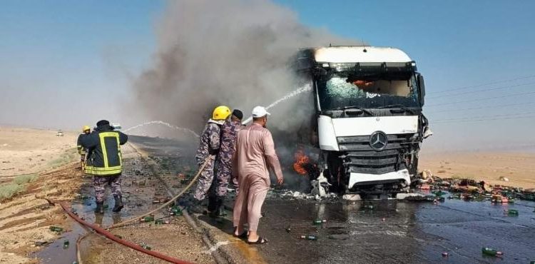 وكالة الناس – تعاملت الدوريات الخارجية مساء اليوم السبت مع حادث إحتراق لمركبة شحن تريلا قادمة من السعودية ومحملة بالمشروبات الغازية ما بعد المدينة التدريبية باتجاه الأزرق.