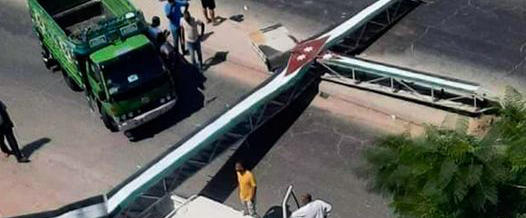 سقوط جسر حديدي في دير علا اصطدمت به مركبة شحن ( صور ) On يوليو 18, 2022 Share وكالة الناس – قالت مديرية شرطة غرب البلقاء ان جسرا حديديا سقط في منطقة دير علا بعد صدمة من قبل مركبة شحن ” ديانا”. وبحسب إذاعة الامن العام ، فلا إصابات ولا معيقات بالحركة المرورية نتيجة الحادث.