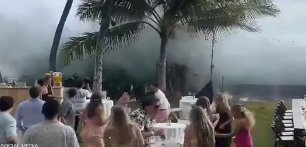 وأظهرت لقطات فيديو اقتحام الموجة للحفل الذي أقيم مؤخرا في قصر على جزيرة في هاواي، لتضرب العروسين والحضور وتفسد “ليلة العمر”، لكن لحسن الحظ لم يصب أحد بأذى.